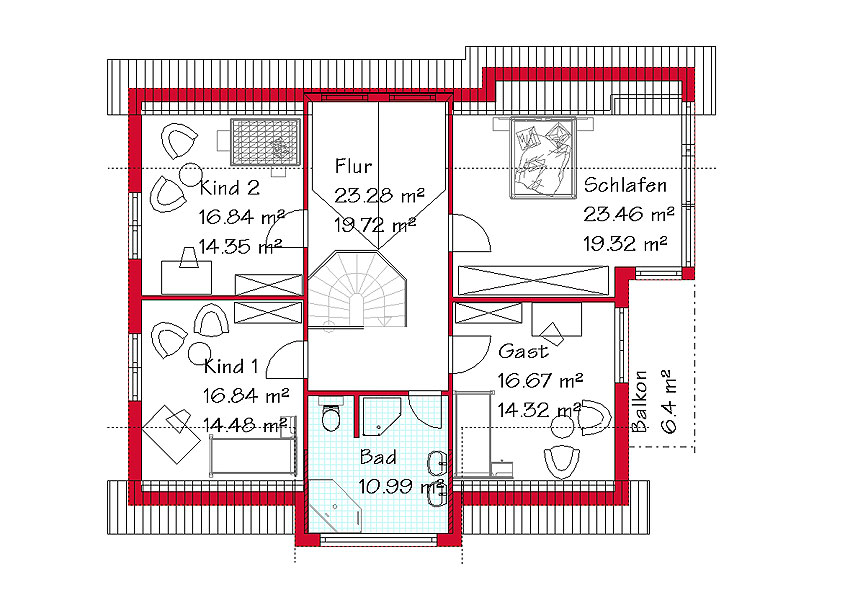 Das Dachgeschoss des Mehrgiebelhauses mit 96,4 m²