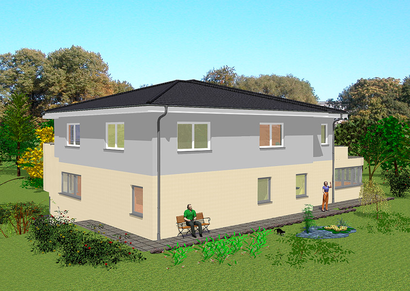 Mit RHEIN-MAIN HAUSBAU können Sie dieses moderne Landhaus mit viel Wohnfläche und attraktiver optischer Gestaltung problemlos umsetzen. Individuelle Anpassungen am Massivhaus planen Sie gemeinsam mit dem RHEIN-MAIN HAUSBAU-Architekten und für den anschließenden Hausbau sorgen die zuverlässigen und schnellen Partner von RHEIN-MAIN HAUSBAU. Dafür, dass Sie zum schnellstmöglichen Termin ins eigene Massivhaus können und endlich im neuen Einfamilienhaus ankommen, sorgt die garantierte Bauzeit. Diese verspricht nach 16-wöchiger Bauzeit, das Massivhaus schlüsselfertig an Sie zu übergeben.